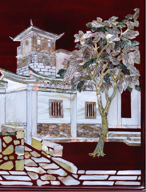 螺钿取材于鲍鱼壳、珍珠母贝、螺凤壳等天然贝类,这份来自海洋的馈赠经过岁月的洗礼,形成了特殊的纹理,再经过工匠的打磨、雕刻、抛光,在不同光影的映衬下又呈现出特有的色泽,或淡雅,或绚丽,如明人黄成所著《髹饰录》描述:“又分截壳色,随彩而施缀光华可赏”。